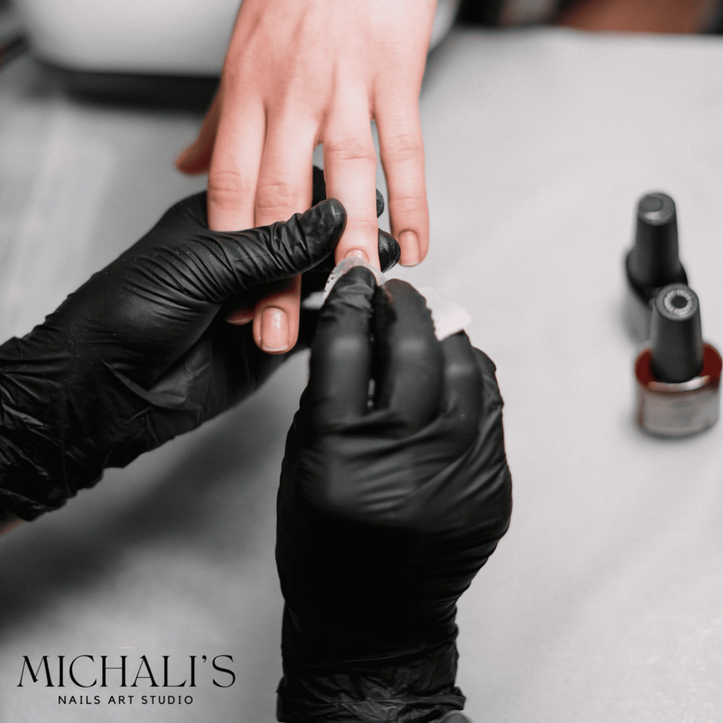 טכניקה מתקדמת הכוללת ניקוי יסודי של העור סביב הציפורן ושיוף מדויק, שמבטיח מראה מוקפד במיוחד.
